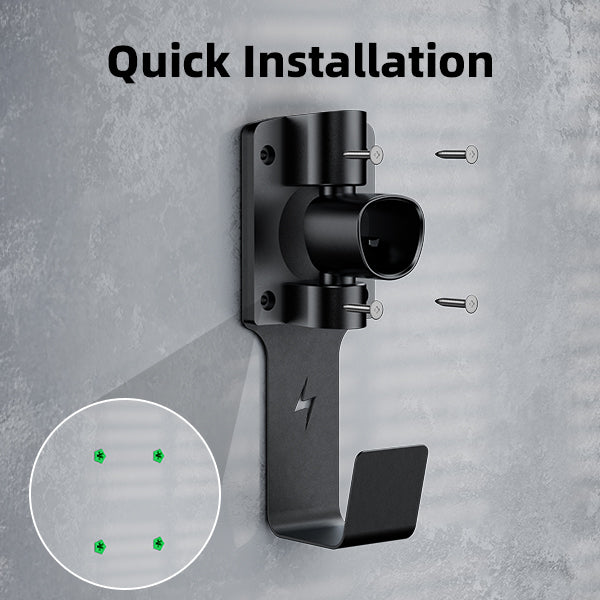 The Tesla charger NACS base and hook can be used independently, enhancing practicality and installation flexibility. The installation process is simple and fast, just drill holes, fix and insert the EV charging nozzle to complete.