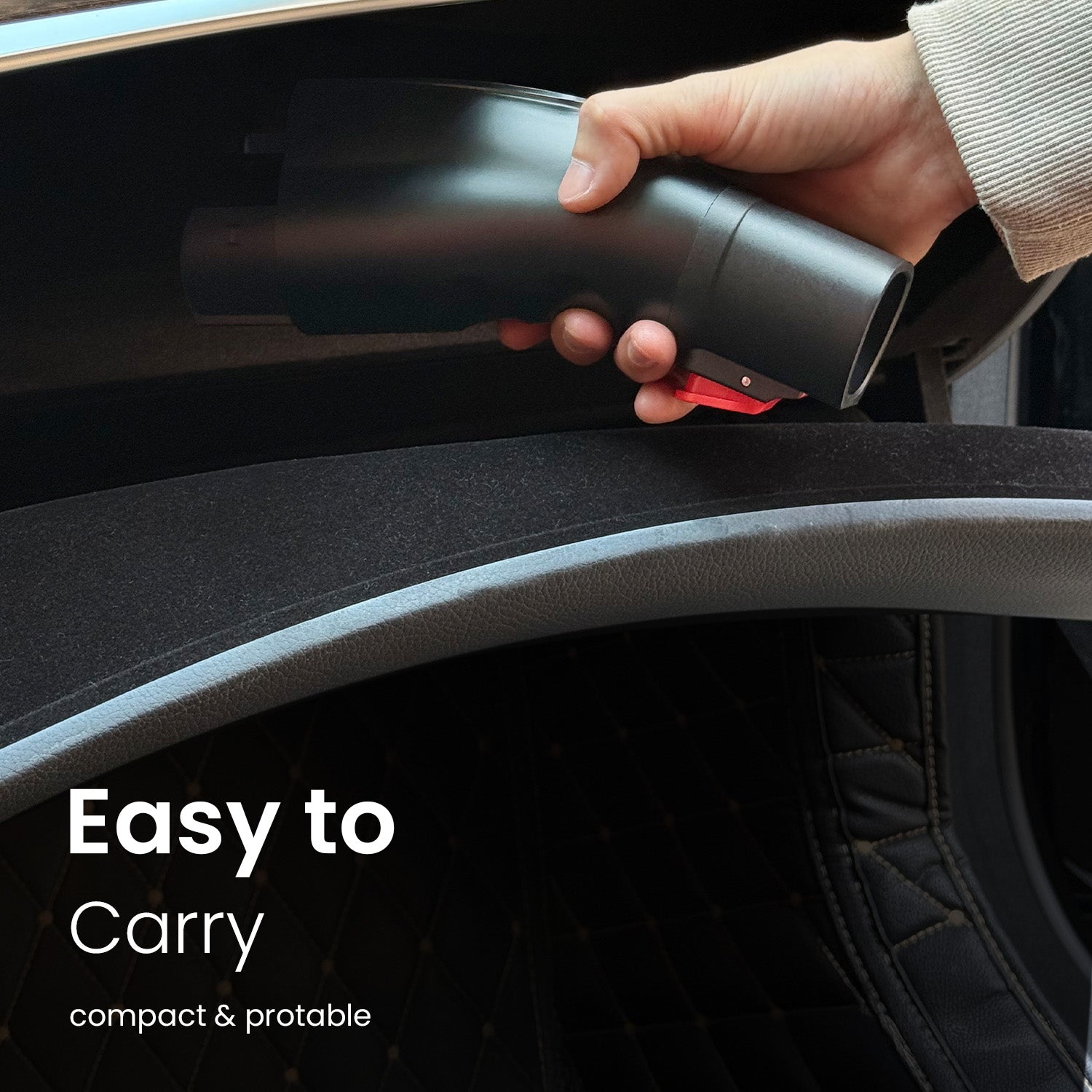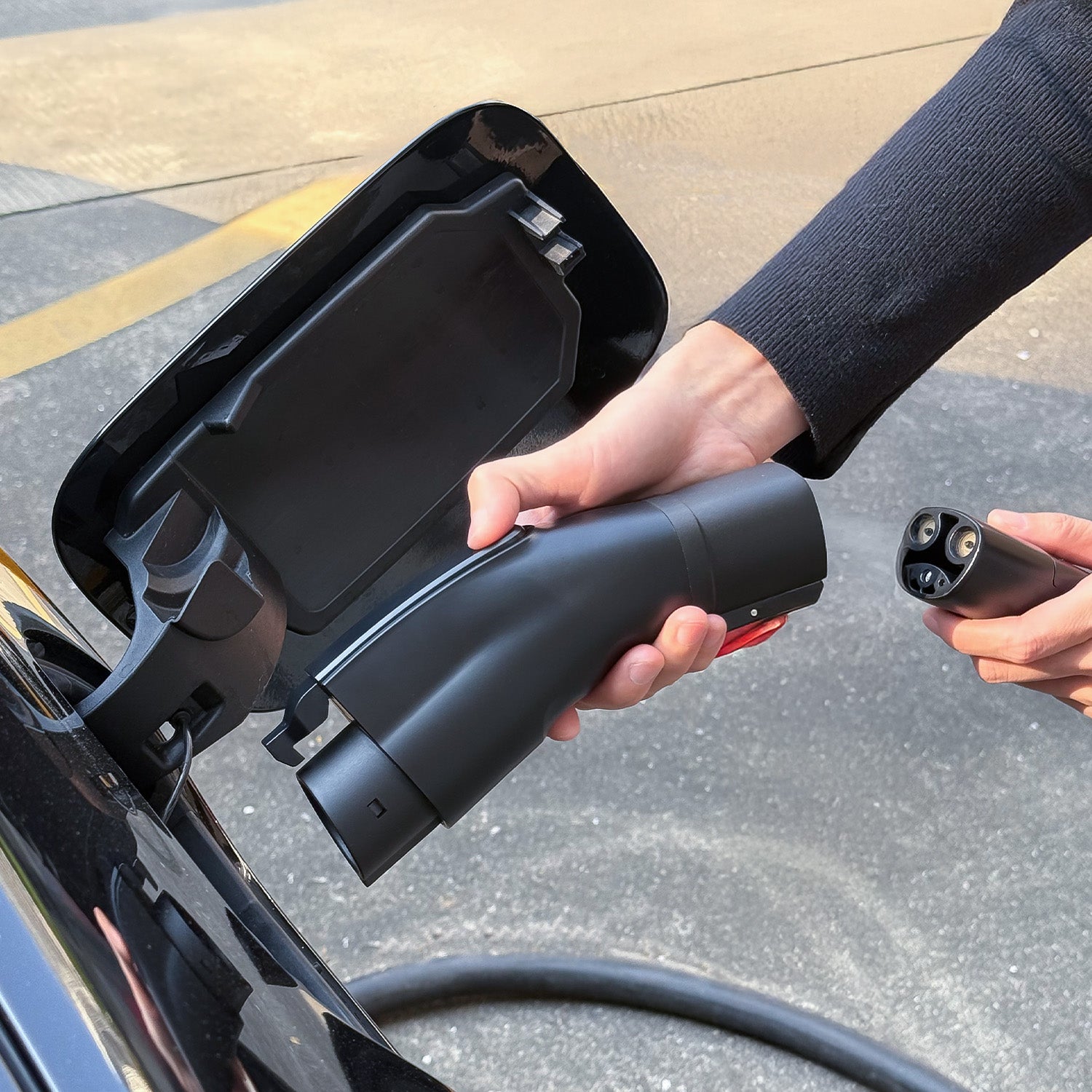 This small, portable, and convenient adapter uses a sturdy locking mechanism to ensure a stable connection between the adapter, charging station, and Tesla, which is perfect for home J1772 charging station, outdoor stations, shopping malls, supermarkets, outdoor charging, road trips, parking lots, and adventures